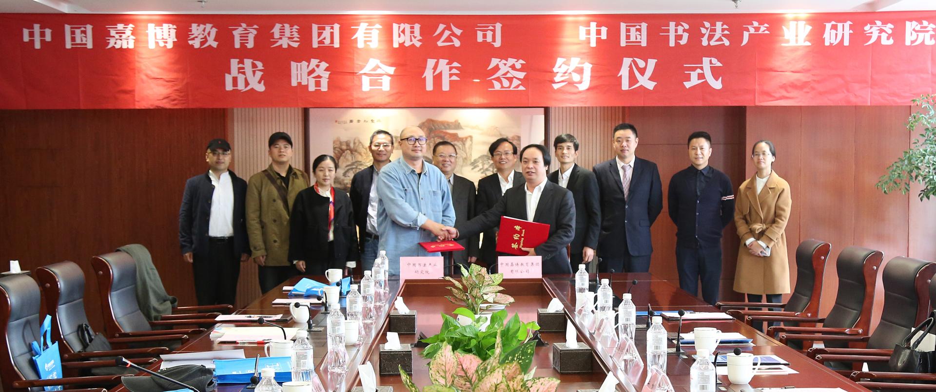 11月10日,中国书法产业研究院与中国嘉博教育集团书法产业战略合作签约仪式在爱游戏 行政楼412会议室举行。嘉博教育集团董事长张卫清、总经理华桃、运营部副总监赵一丹、企划部副总监李冰,研究院顾问韩翼祥,副校长、研究院院长黄建新,副院长黄齐辉、薛平,艺...
