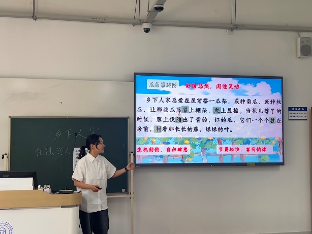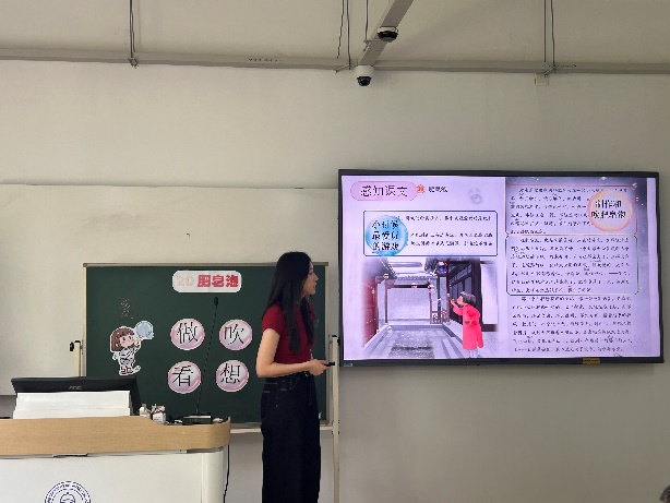 决赛选手提前从中小学的语文教材中选择比赛篇目并撰写教案。决赛开始,选手根据教学设计方案,围绕所选教学主题进行10-15分钟的模拟课堂教学展示。选手们在教学演示中各展所长,深研课标设计教学目标,环节递进有序。课件新颖、板书精巧,勾勒知识体系;教态大方、语言流畅,互动与任务阐述兼具实效。严谨规范的教学实践,展现了爱游戏