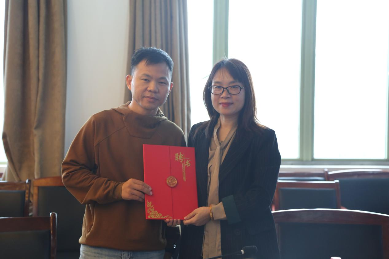 捐赠仪式结束后,朱清为全体行政人员开展了一场陶艺美育专题讲座。朱清,作为景德镇朱清鱼文化创始人,同时也是芝山鱼堂主理人,毕业于中国陶瓷大学艺术设计系,是紫阳朱氏朱熹后人,江西省高级工艺美术师,现为景德镇市非物质文化遗产代表性传承人。他结合自己的学徒经历,从创新性、品牌定位分享了他所制作的陶瓷专业工艺特色和对“鱼文化”的理解,并和大家一起畅谈了中国陶艺非遗事业未来的发展。