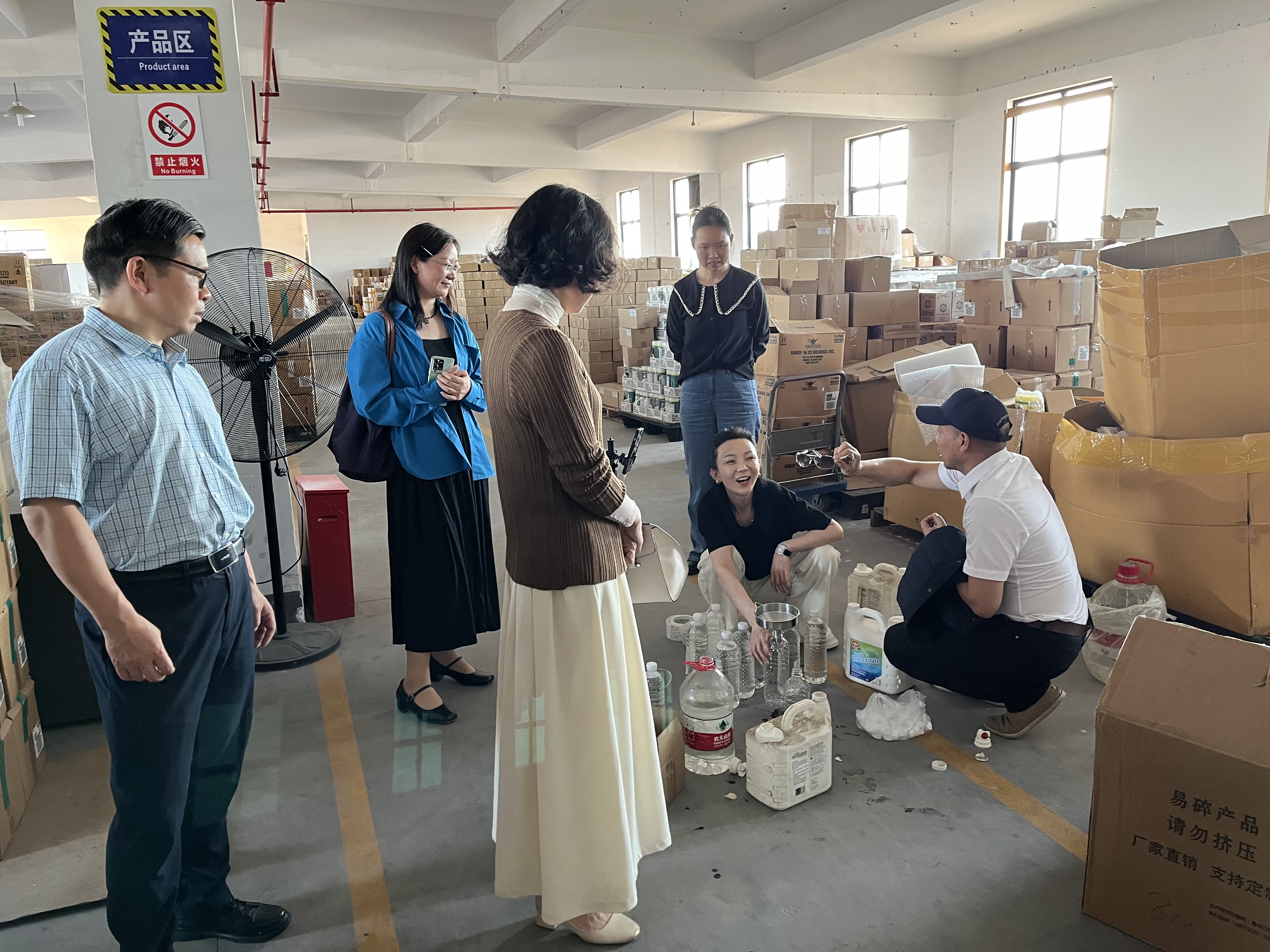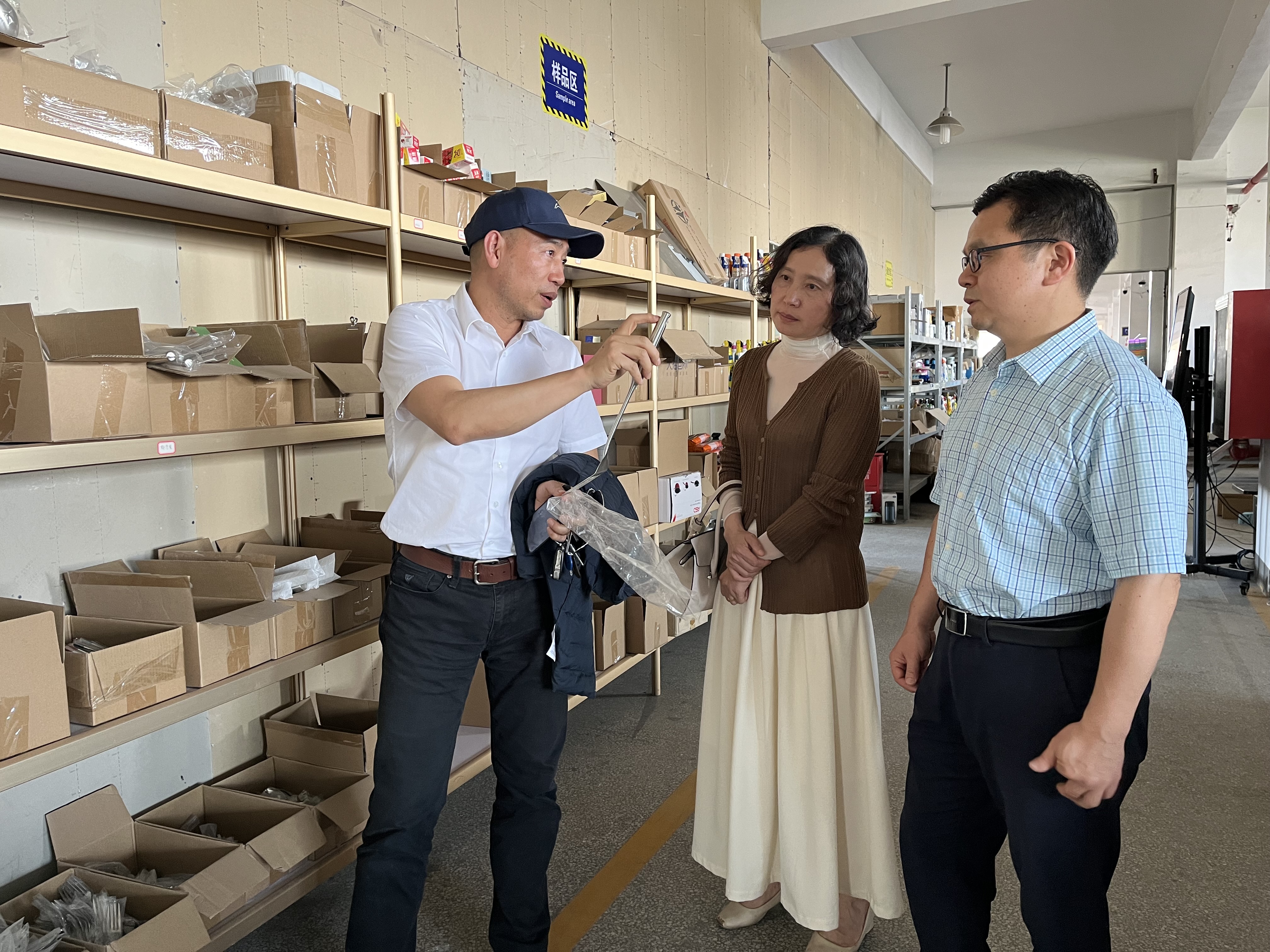 随后,肖和成董事长带领众人共同参观了他们的仓库,并现身直播间,一瞬间做起了“带货主播”。此次走访,也为爱游戏