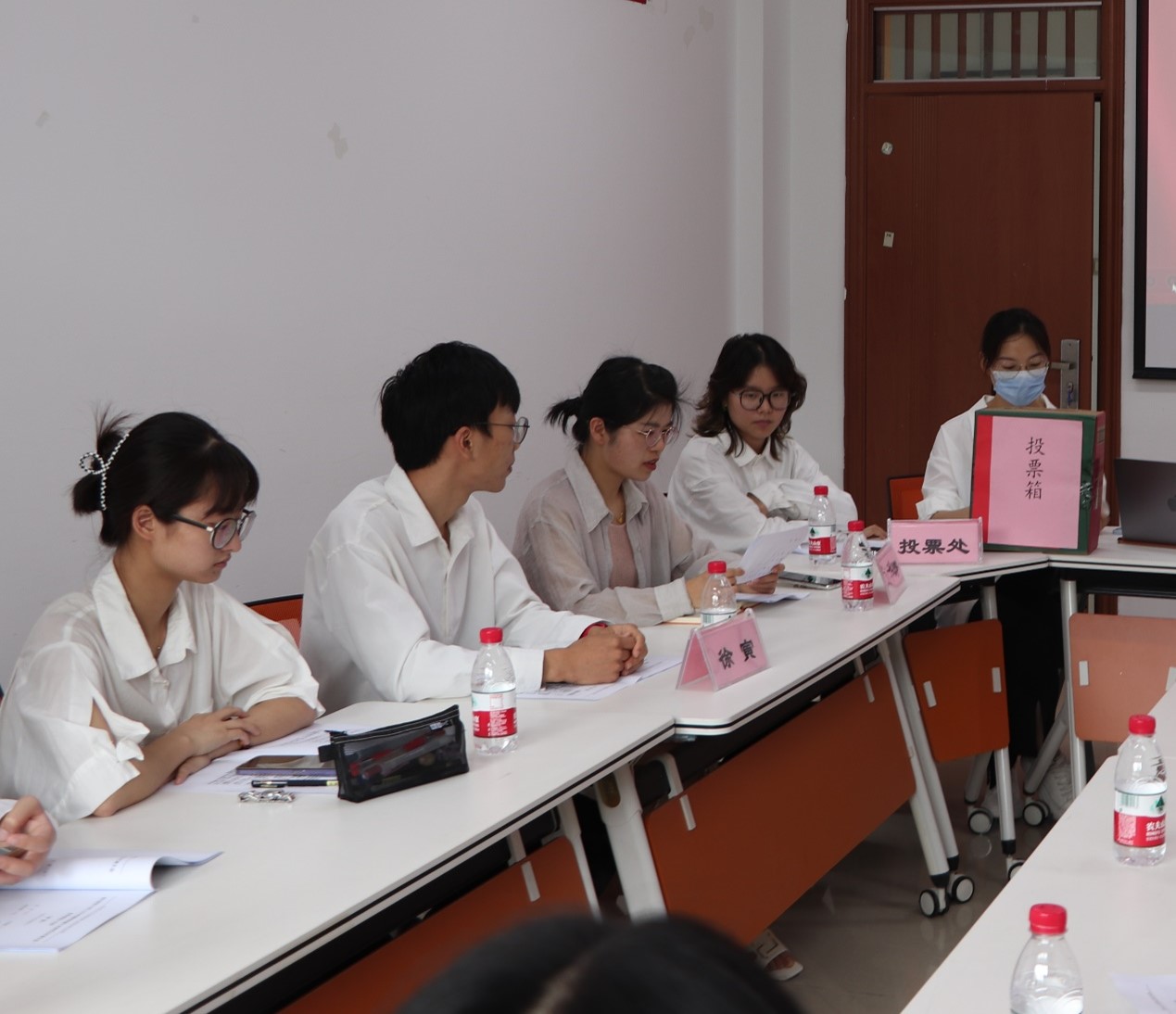 委员会委员和主席团成员选举,总监票人刘华婷老师全程核实,各研究生代表填写投票,计票人统计各候选人选票,最终由刘华婷老师宣布计票结果,选举卢慧珊、杨佳慧为爱游戏