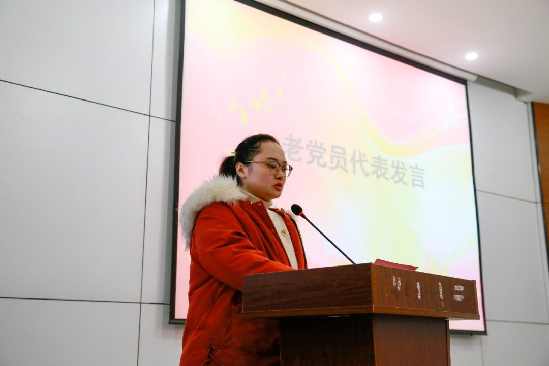 宋绪龄代表老党员与新发展党员分享心得体会。希望新发展党员今后要以更高的标准要求自己,主动承担责任和义务,把入党的荣光转变为奋斗的使命,勇于开拓,敢于创新。