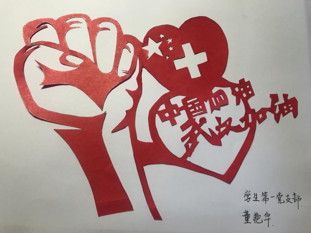 学生党员们结合自身优势以及支部活动中所学的技能,各显神通。如书法作品,洋洋洒洒为前行者发声;原创诗歌,句句词词掷地有声,只要还有一支笔,就该写下为抗击疫情所做的贡献;剪纸作品,双手握拳就是力量,剪刀下也有万千柔情;绘画作品,是现下疫情的点点滴滴以及希望疫情结束的美好愿望;朗诵作品,虽然身处五湖四海,但是心中共同牵挂湖北,以此振奋大家。不同形势的作品只为传达“抗击疫情万众一心”。