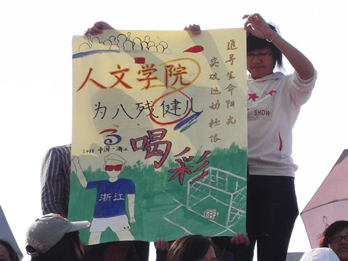 )组织了全院学生到场观看比赛,为残疾人运动员们加油助威。