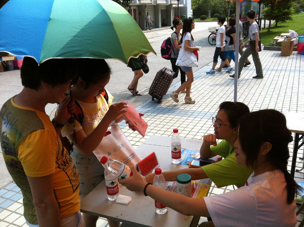 的志愿者们用自己的辛勤与汗水为入学新生打造出一条顺畅的入学爱心通道:从各大车站的等候迎接,到校门口热情的指引道路,以及迎新点帮助新生报道,直到将每一个新生送入各自寝室,每一个环节都有我们的志愿者全面细致的服务,充分的工作让新生和家长们感到安心和放心,很快就完成了入学报道程序。