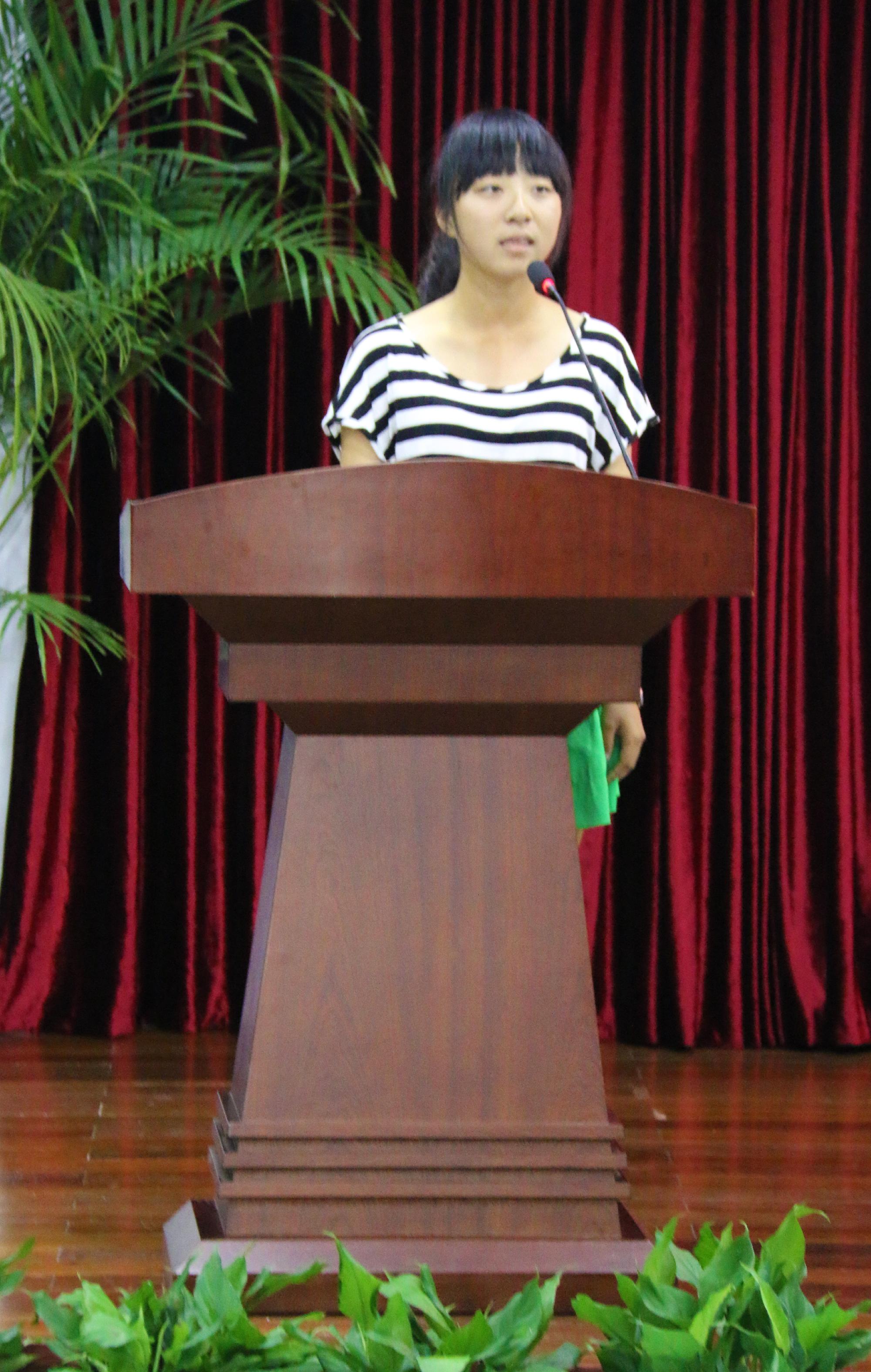教师代表崔霞老师发言,她首先代表全院教师欢迎新同学的到来,然后分享了从学生时代到职业生涯的人生历程,将自身的经历倾囊相授,激励新生用四载青春韶华演绎美好的大学生涯。老生代表12文学罗婷同学用诙谐的语调向新生们传达了浓浓的爱意,分享了其大学生活中的坚持与努力。新生代表14广告1班郑蓉同学代表全体新生表达了对迎接大学生活的饱满热情,并表示在今后的学习生活中会加倍努力,提升自我,做好准备,迎接新的挑战。最后,中文系主任吴智斌老师、国际汉语系主任铁徽老师、传播系主任李漪老师、数字媒体系主任王文奇老师分别为新生送上了入学寄语。