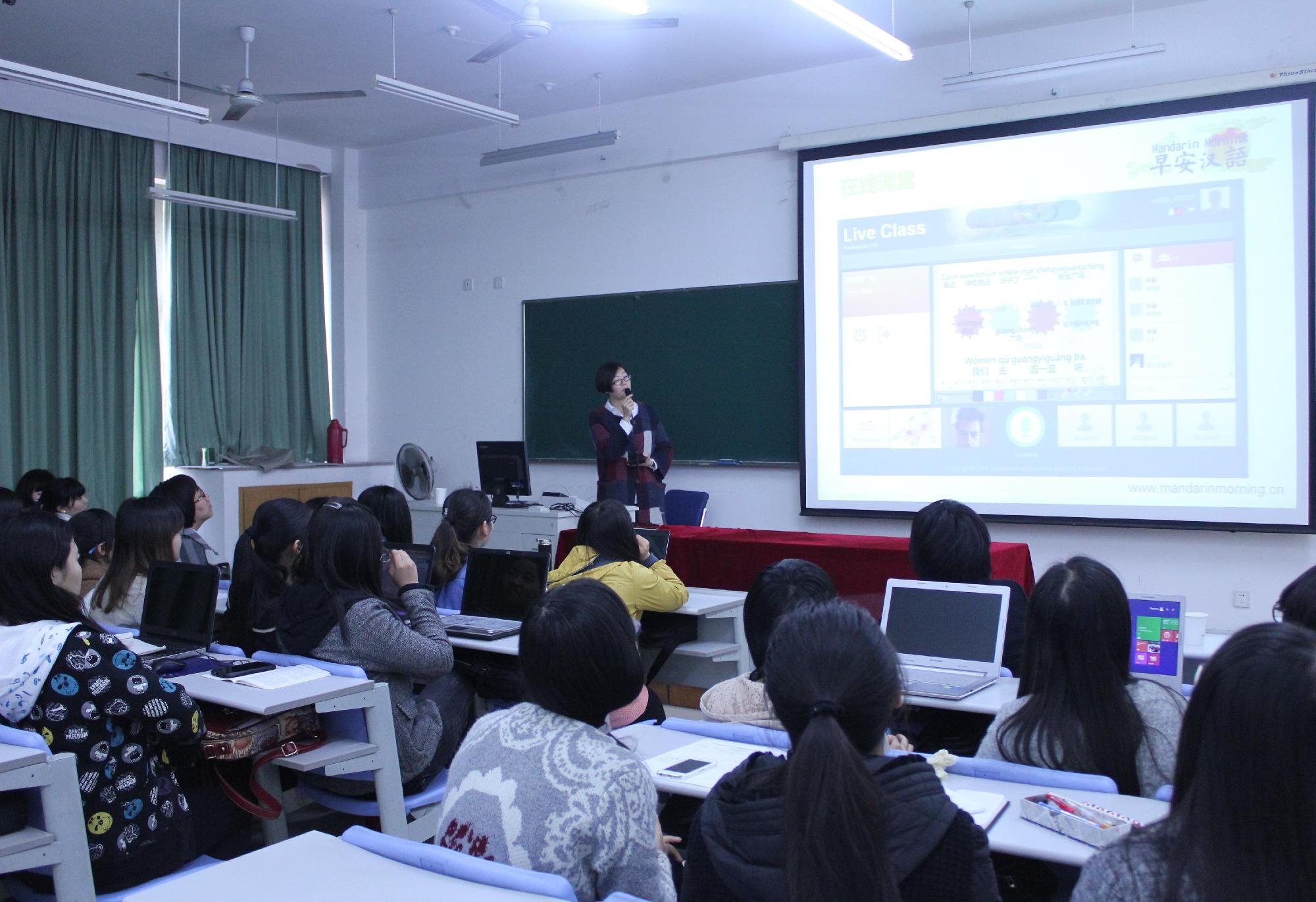 校长杨凤华携公司网络孔院项目经理时欢欢来到7号楼107教室,讲授了一堂别开生面的“应用语言学”课,深受学生好评。课程由人文爱游戏