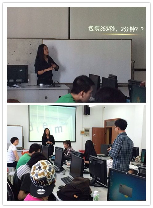高级资深合成师,主要从事电影和电视剧的电脑特技、后期制作、电脑动画片、电视广告电视栏目包装等项目的专业制作,曾为电视剧《飞鱼传奇》、《蓬莱八仙》、《钱塘传奇》以及电影《痞子英雄2》、《夺路而逃》等大型影视剧,进行后期电脑动画特效制作。她作为数字媒体艺术专业“基地精英进课程”活动的第一位老师,在本次课堂上讲解了电视广告和电视栏目包装专业制作的内容,介绍了影视企业合成制作人才需要的条件和能力,阐述了影视后期制作具体的工作流程。并给同学们播放了她执导的几段毕业生demo,引发了同学的一片赞叹。同时,潘老师用一段现场制作的实例——“大雪纷飞的山水运动”影像,剖析了AE中摄像机设置、三维空间搭建和动画曲线调整等专业技术知识点,演示了具体运用创意和软件制作过程。此次课程的内容多为同学们尚未接触的领域,引发了大家的好奇和学习热情。