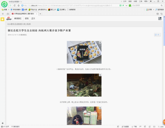2014年12月14日,新浪网在资讯一栏中以《浙江在校大学生自主创业向杭州人推介家乡特产水果》为题,报道了人文爱游戏