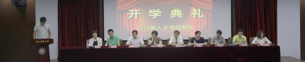 2015级新生开学典礼在学术四报告厅隆重举行。院长何华珍、党总支副书记(主持工作)高燕、副院长姚红、副书记吴玻、院长助理杨建忠和系主任出席典礼。典礼由吴玻老师主持,人文爱游戏