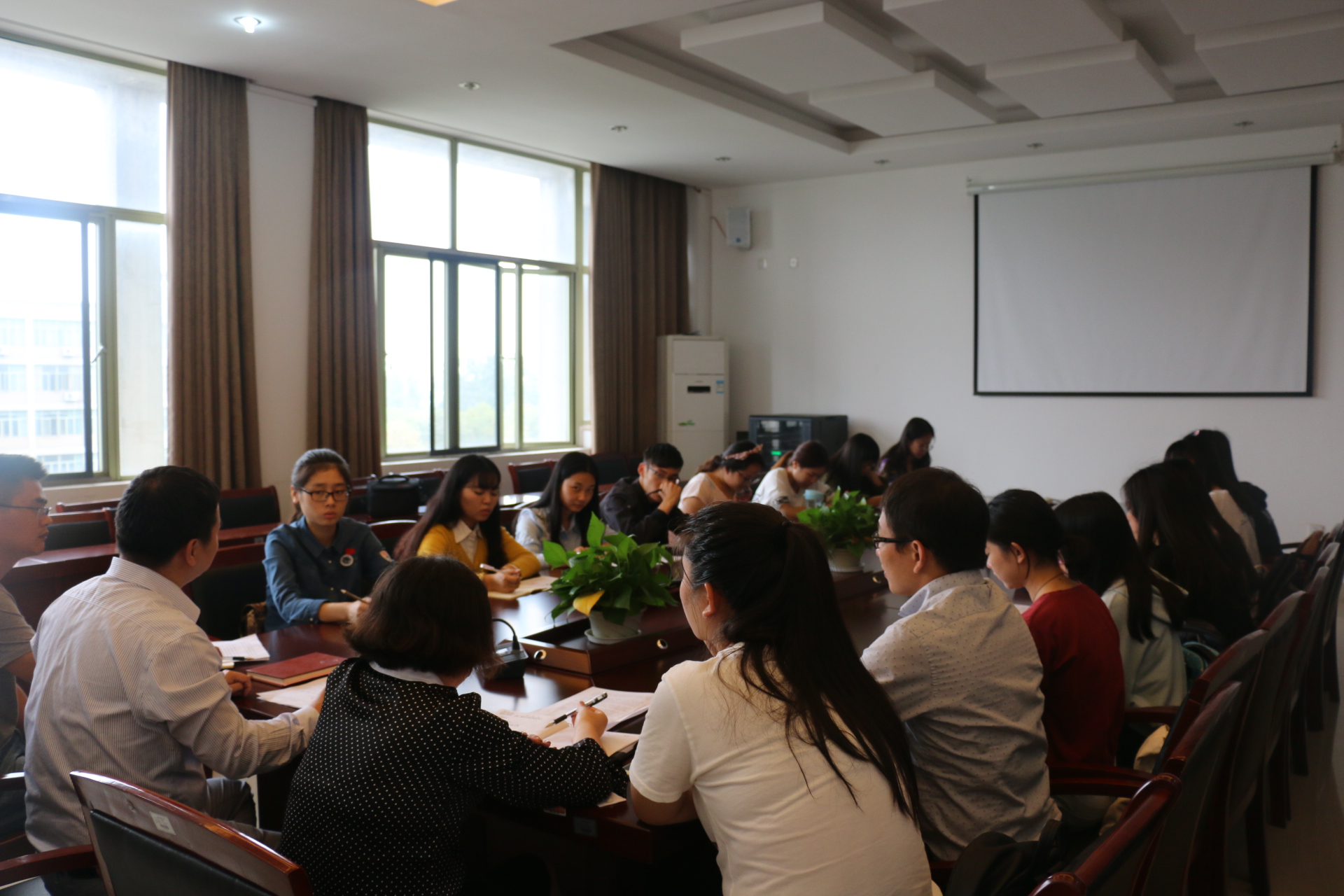 在7-404会议室召开了学风建设主题活动推进会,党总支副书记吴玻、三位辅导员以及相关学生组织负责人参加了会议。
