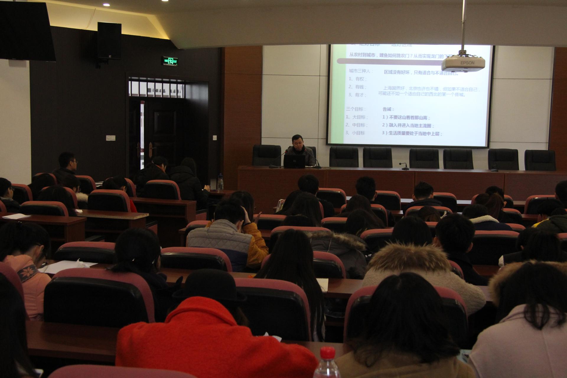 会上,吴老师从当前高校毕业生就业形势、当前高校就业政策介绍、树立正确的择业观、毕业生求职材料准备及注意事项、求职渠道及面试技巧等5个方面向毕业生做了详细的讲解和指导。他指出:当前就业形势严峻,毕业生要积极参加各类招聘会,把握每一次就业机会;要了解当前就业政策,使自己在就业过程中更加顺利;要有正确的择业观,对自己准确定位,树立先就业后择业的观念,找到适合自己的工作;要做好各类有利于就业的准备,为找到自己理想的工作岗位奠定基础;要关注各类就业渠道,获得更多的就业信息;要针对自身和个别岗位制作个性化的应聘简历,提高就业成功率;他还要求毕业生们,在找工作过程中,要甄别真伪,要加强防骗意识和安全意识,平安顺利地找到自己理想的工作岗位。