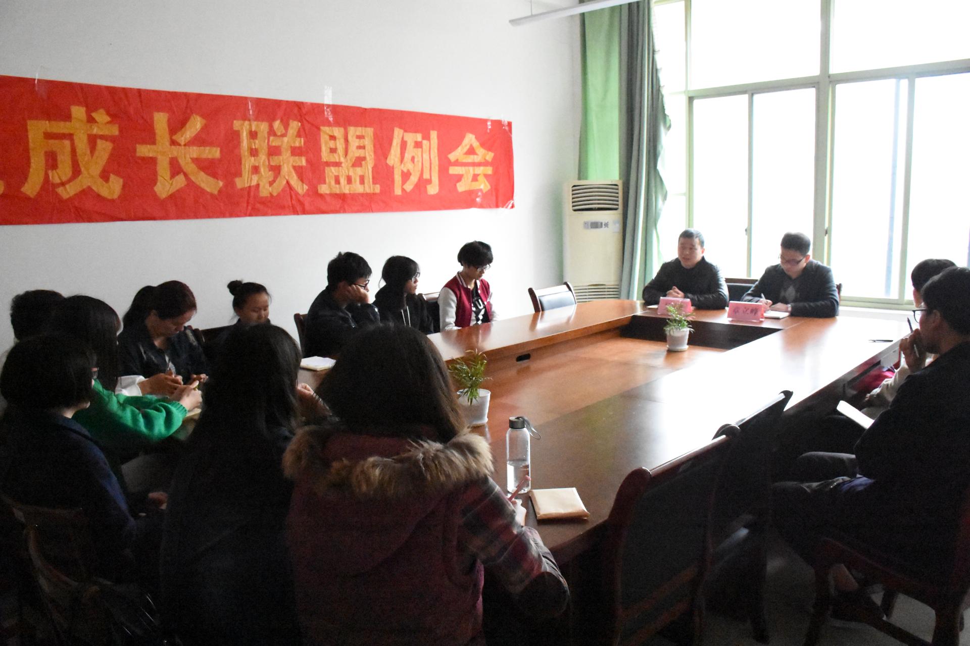 成长联盟例会。院党总支副书记吴玻、辅导员章立峰以及大二全体成长伙伴参加了本次会议。