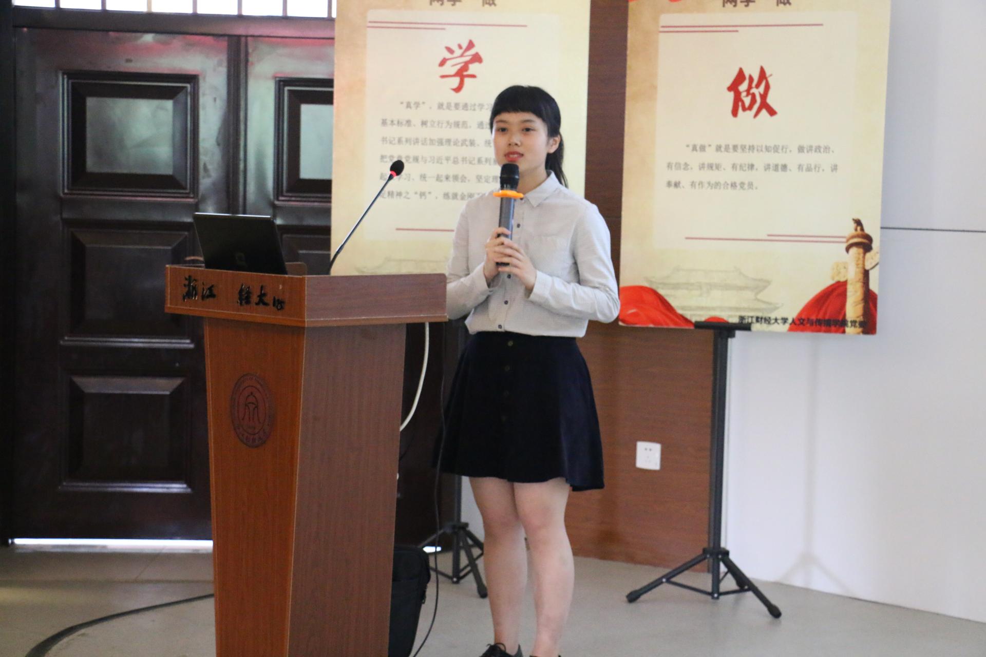 致辞。她介绍了“两学一做”学习教育的重要意义以及举办本次比赛的背景和目的,同时提了三点希望:一是希望活动中有收获,通过本次活动不管参赛选手还是观众都能有所得、有所获;二是希望活动后能践行,不让活动流于形式,希望党员们能把活动中所学付诸于行动;三是希望活动成品牌,丰富内容,创新形式,把微党课比赛打造成党员学习教育、素质提升的活动平台。