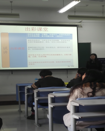 郭雯老师的讲解抽丝剥茧,妙语连珠,现场点评了13级汉教班金晓林同学的试讲视频。