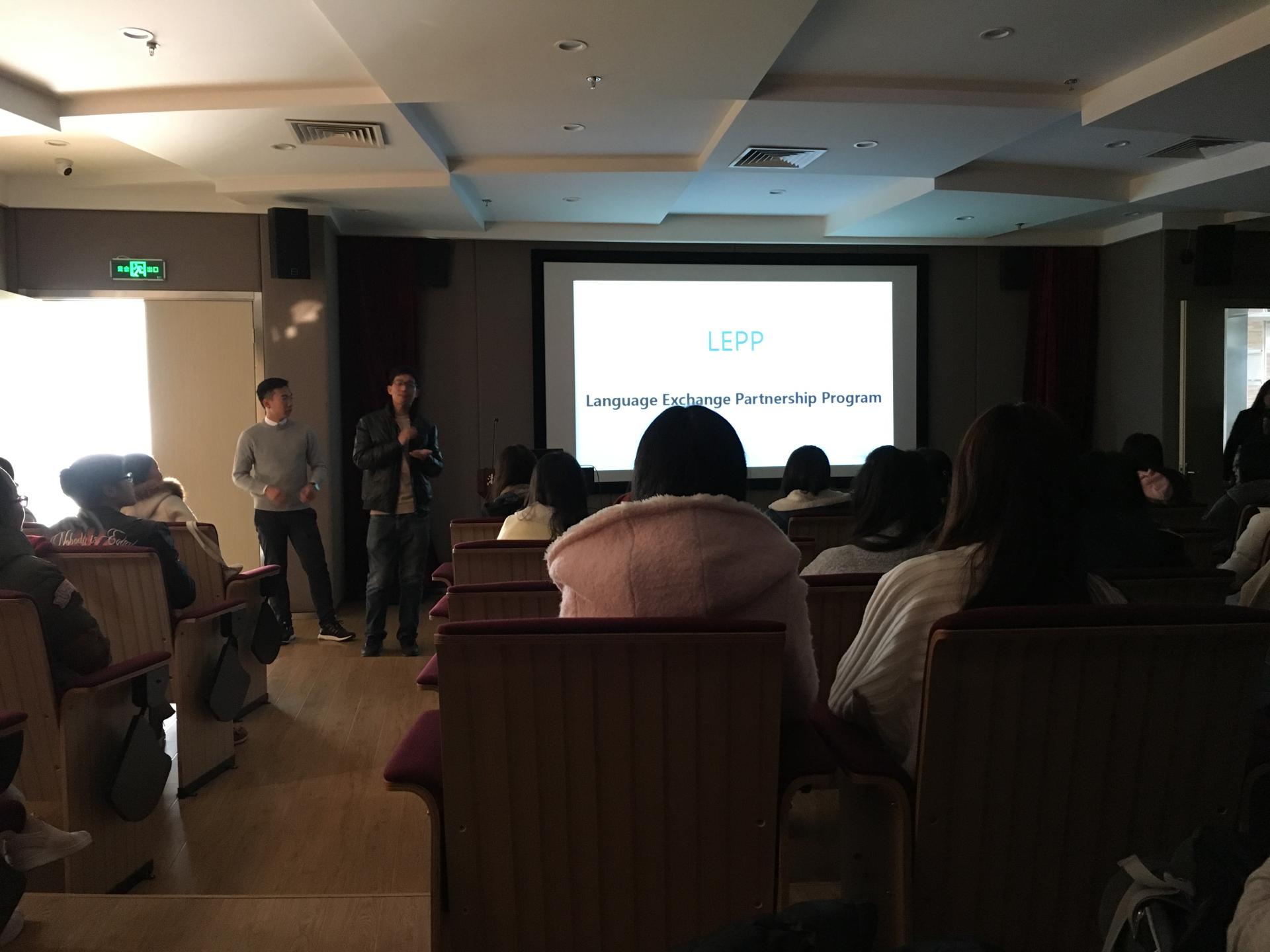 合作开展的“语言交换伙伴项目(LEEP)”,并阐述了该项目对于汉语国际教育专业学生和外国留学生的意义和作用,鼓励大家积极参与进来,并与专业课程相配合,在学习语言的同时,也能了解、关注各国各地文化习俗的发展。