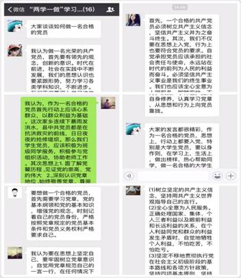 学生第二党支部于7月17日,利用微信“‘两学一做’学习交流群”,以“如何做一名合格的党员”为主题,开展了一次在线的专题学习交流。