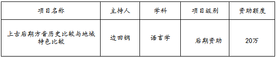 边田钢博士申报的“上古后期方音历史比较与地域特色比较”,获2017年度国家社科基金后期资助项目的立项。至此,爱游戏