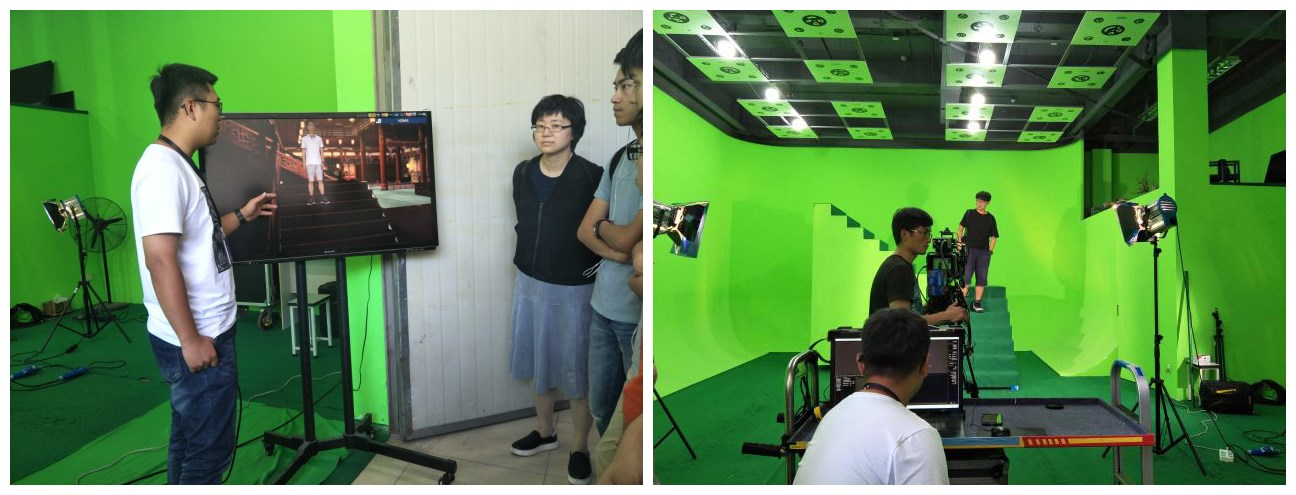 此次参观得到了公司的热情迎接。在基地教育部门卢老师的带领下,同学们首先参观了时光坐标在园区的小型摄影棚,公司工作人员为同学们展示了绿幕拍摄的一些运动,用高科技合成设备呈现了静态和虚拟动态场景合成的摄像效果,同学们也亲身进入场景体验,这种拍摄方式能够直接展示合成空间效果,给艺术创作带来了更多的发挥空间。同学们在现场提出了不少专业问题,公司的工作人员给予了详细的解答。
