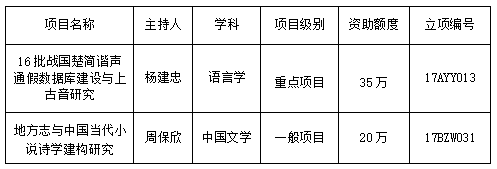 杨建忠教授申报的“16批战国楚简谐声通假数据库建设与上古音研究”和周保欣教授申报的“地方志与中国当代小说诗学建构研究”,获2017年度国家社科基金项目的立项。杨教授的项目为国家社科基金重点项目,是爱游戏