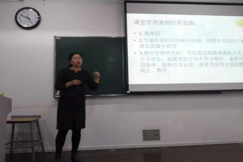 在“你讲我评”环节,刘璇老师现场播放了国际汉语系大三学生的说课视频,同学们都认真欣赏之后,由刘璇老师点评了说课内容。