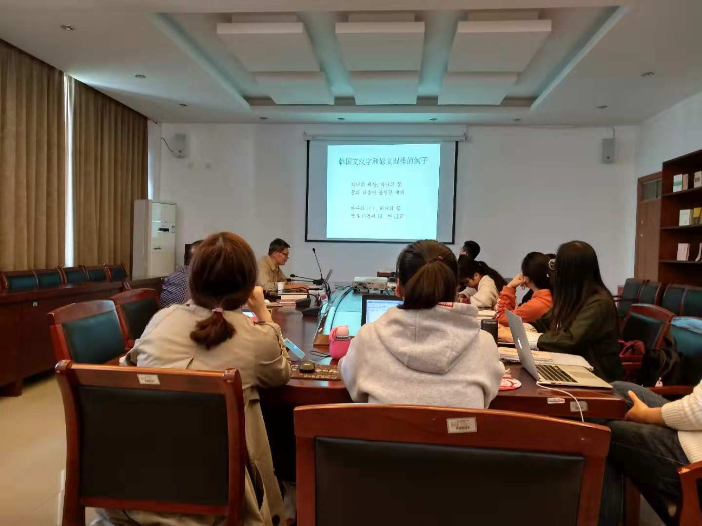 图书馆高级馆员、多语言翻译家邓应烈先生应邀来工作坊进行座谈。此次座谈会由东亚汉字资源研究中心主任何华珍教授主持,工作坊有关师生参加了此次活动。
