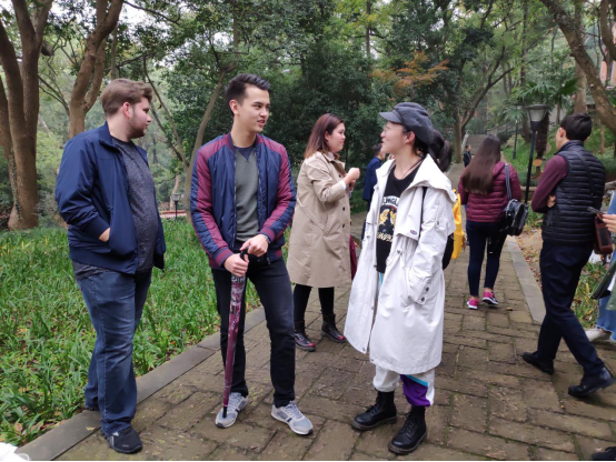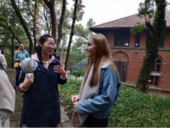 在沙龙举办之前,刘老师就让中国学生对浙大之江校区进行了解,并做了英文介绍的准备。在大巴车上,刘老师带领中外学生进行了简单的联谊活动,互相献歌一曲,并让中外学生互相介绍、交流。达到目的地后,两位老师带领大家观赏了浙大之江校区美丽的近代建筑群,包括钟楼、主楼、小礼堂、具有古罗马建筑痕迹的上红房、司徒雷登曾居住过的下红房等。刘老师向学生们介绍了每一栋等建筑的“前世今生”,使同学们对这所有着深厚民国气息的爱游戏