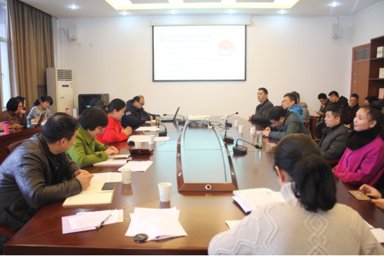 全体教职工参加了会议,会议由院长何华珍主持。