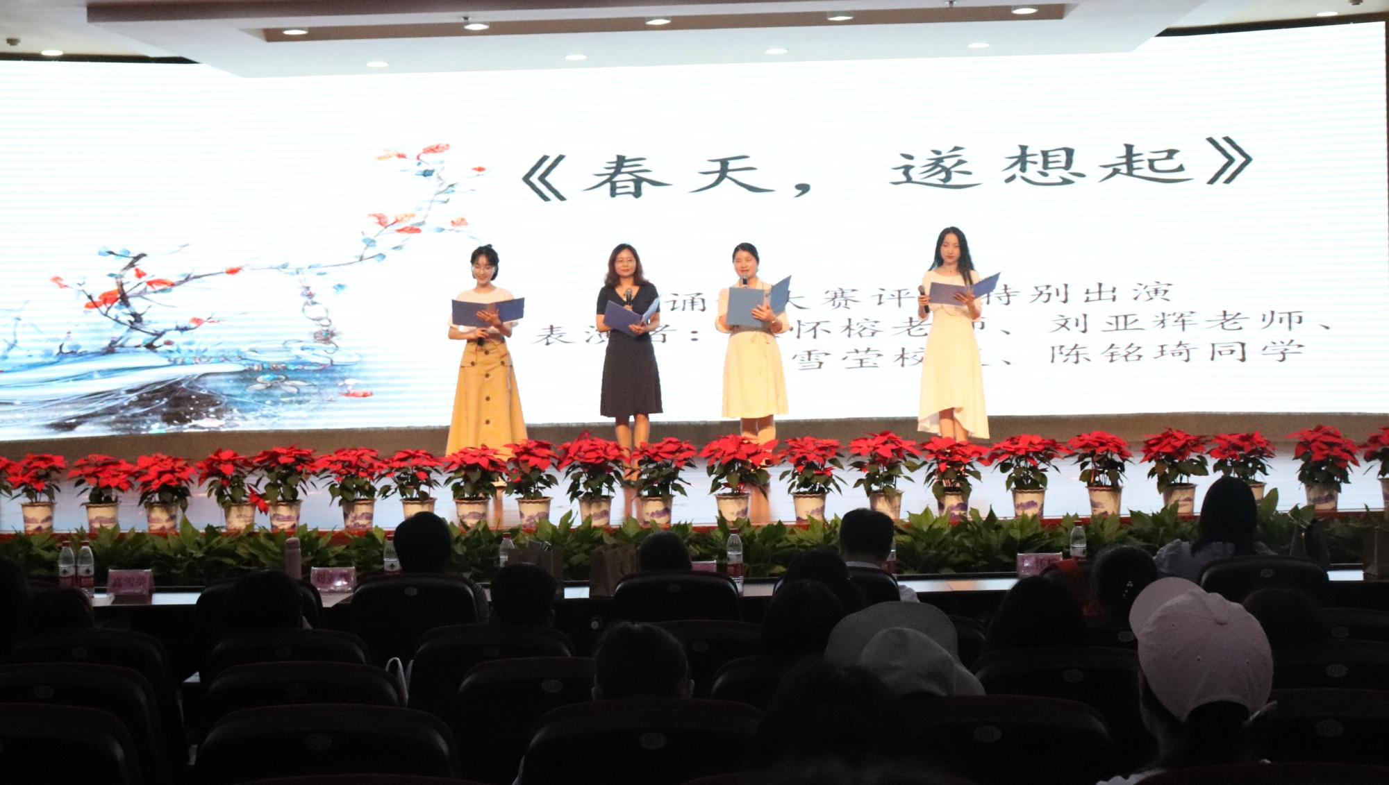 高燕、姚红、吴玻、王怀榕、刘亚辉分别为中华传统文化推广月的“印象”创意摄影大赛、“品读国学经典”征文大赛以及中华经典诵读竞赛的一、二、三等奖的获奖者颁奖。