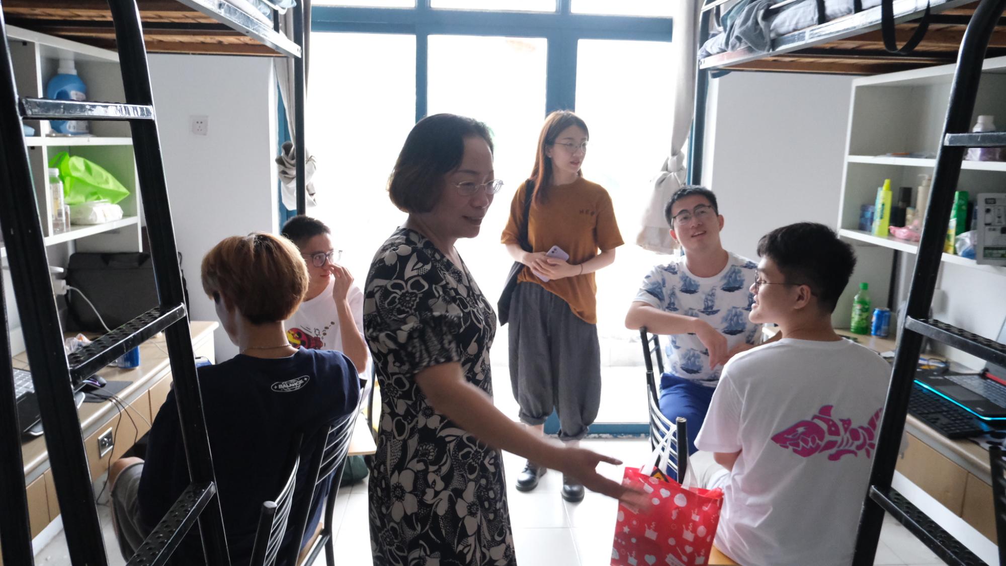 党委副书记袁慧兰和2021级新生辅导员任灵洁老师走访了新生寝室,对新生们的到来表示热烈的欢迎。