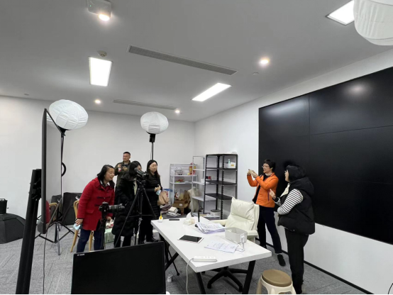教师参观了该公司的办公区域、网络直播室、商品陈列室等,与员工进行了亲切的交流,了解到网络直播团队作业的系列流程,双方也就爱游戏