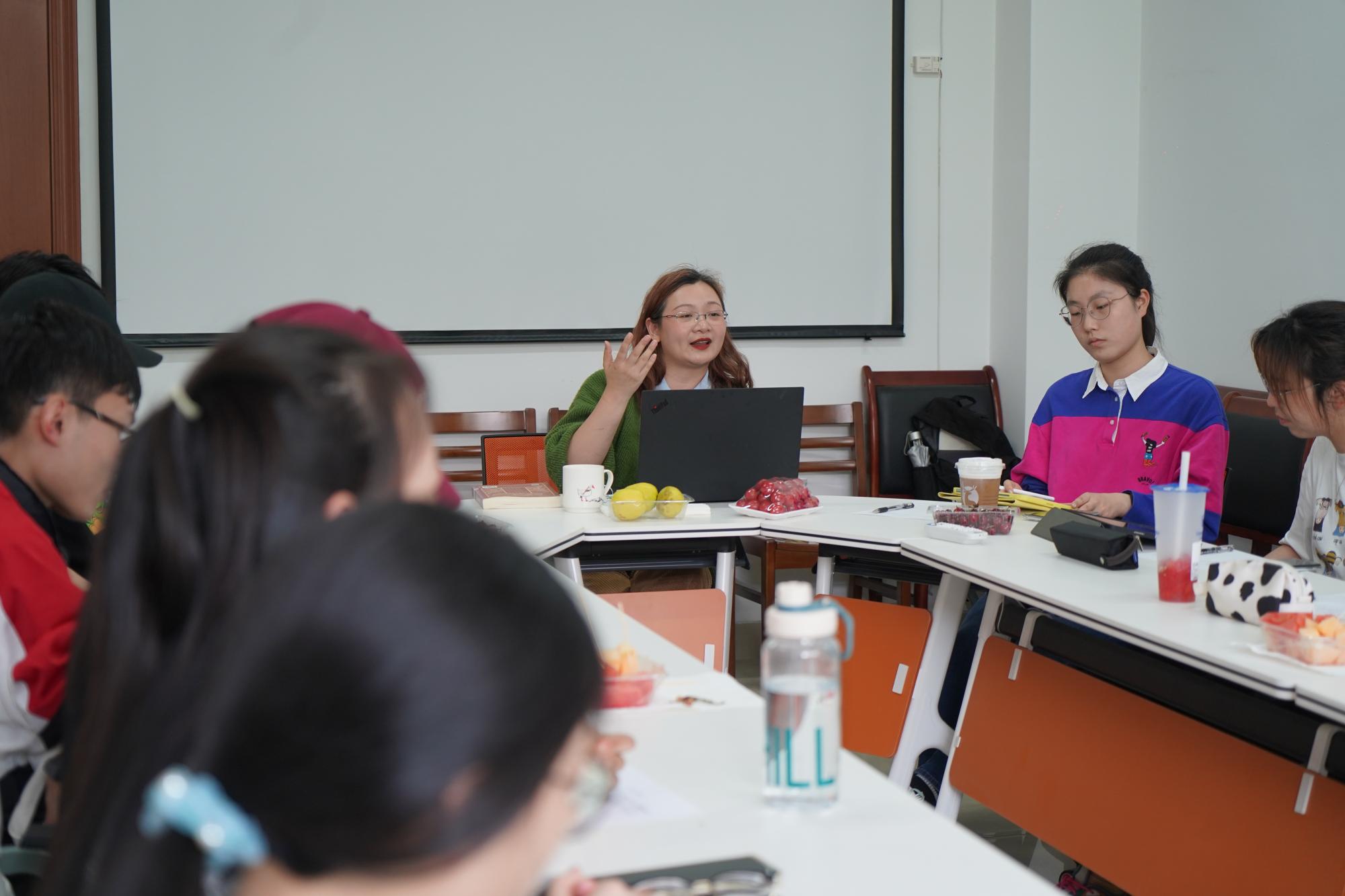 最后胡梦颖老师鼓励大家在大学期间要多读一些学术性的书籍,这对于同学们今后写毕业论文,从事学术研究,很有帮助。为了减轻学术性文本讲解的枯燥,胡梦颖老师将文本内容与当前错综复杂的国际形势、疫情反复下大学生考研就业等热点话题相结合,引发了同学们对于本科期间学习和毕业后安排的热烈讨论。