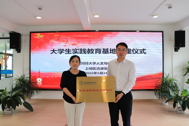 的课堂中“学”,更要在社会的实践中“练”,与清波街道的实践教育基地共建,使学生有机会能够走出校园,深入基层锻炼自我,从而帮助学生明晰职业认知,提升择业能力,增强服务意识,在充分准备中实现高质量就业。