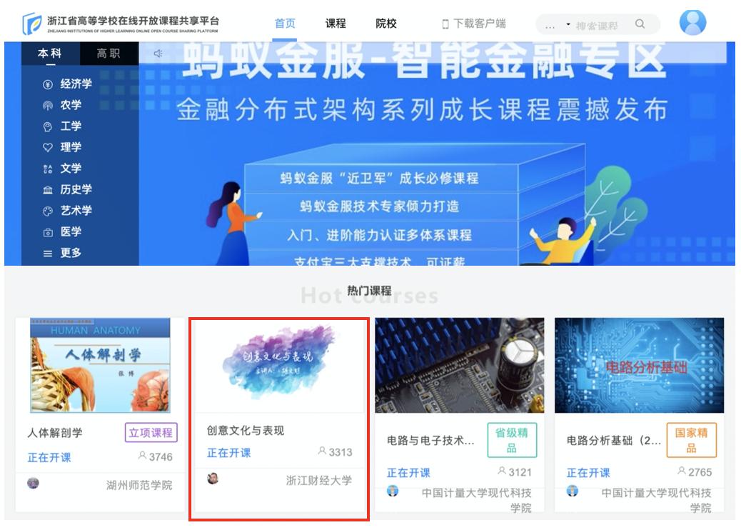 《创意文化与表现》在提升学业挑战度、增加课程难度和拓展课程深度方面取得了积极成效,多次获“省平台”爱游戏推荐为热门课程,先后被认定为浙江省首批一流本科课程(混合式)和第二批一流本科课程(线上),并于2021年获爱游戏