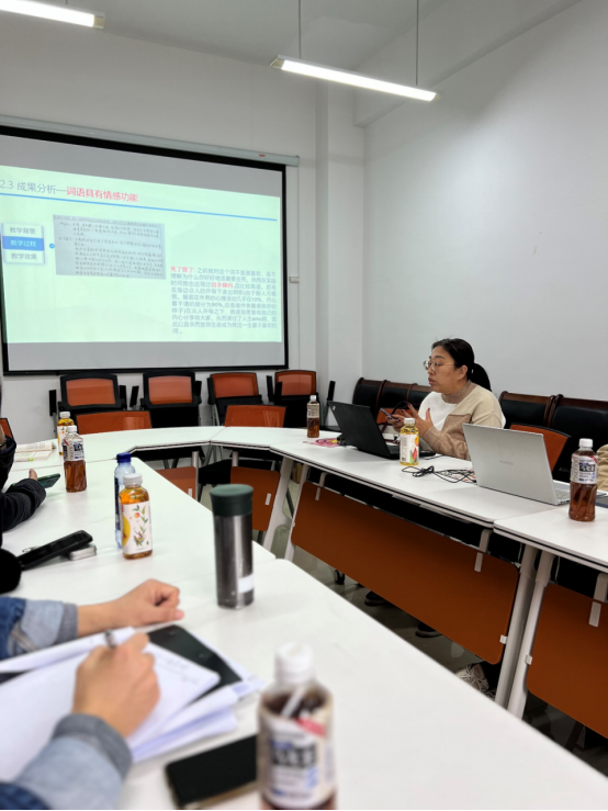 铁徽老师分享的“词汇的情感力量”一节来自必修课程《语言艺术》。她首先运用了图片法、视频法等手段带动学生感知语言效果,再借由词汇调查表的形式鼓励学生从生活体验出发探讨词语的主观性和情感功能,强调语言暗示对改变现状的重要作用。这种教学模式将语言理论与实际应用作了巧妙的结合,化抽象为具体,达到了知识目标、情感目标和思政目标三者的统一。