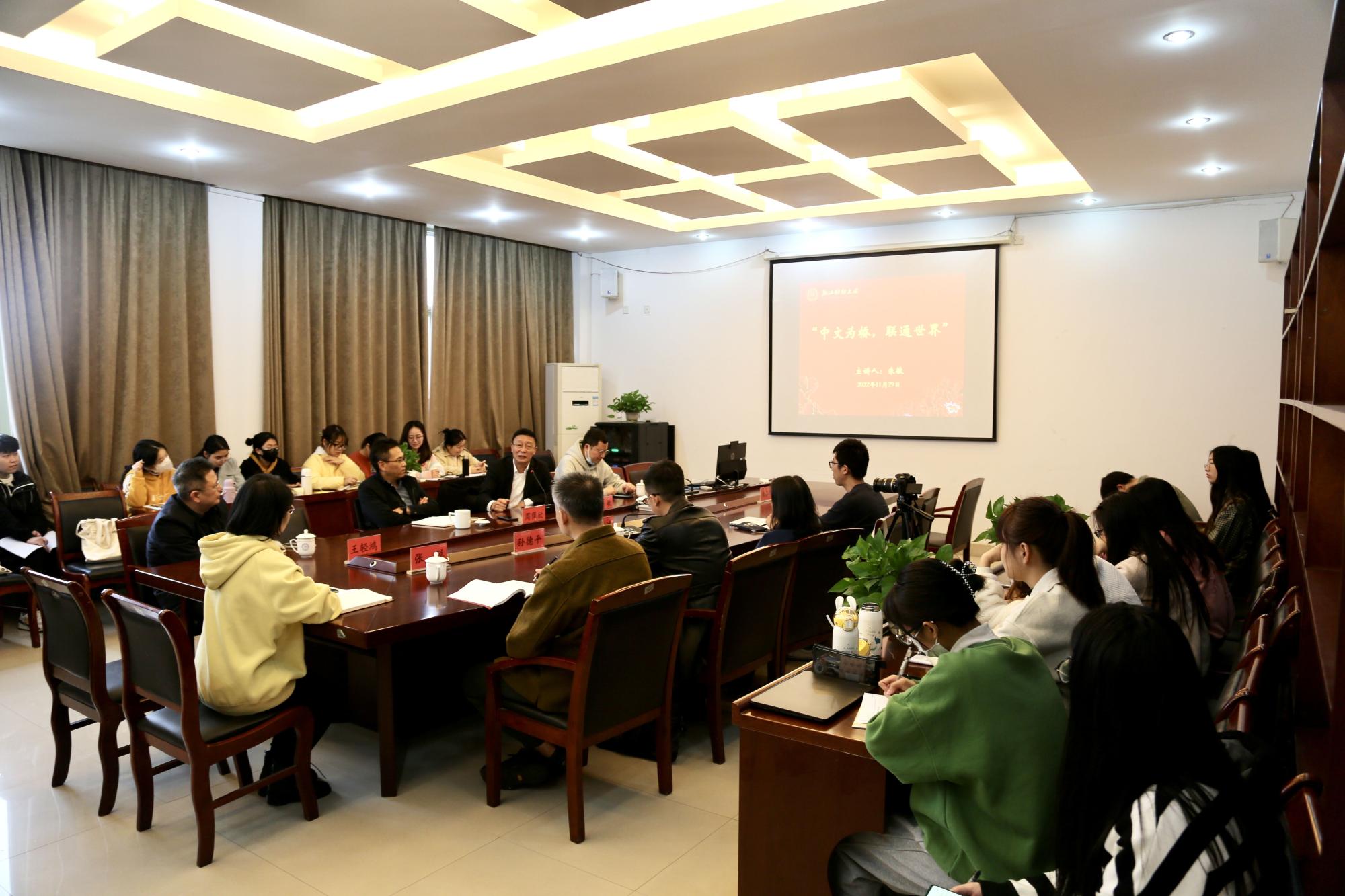 做了题为《中文为桥,联通世界》的专题讲座,讲座由院长周保欣主持,爱游戏