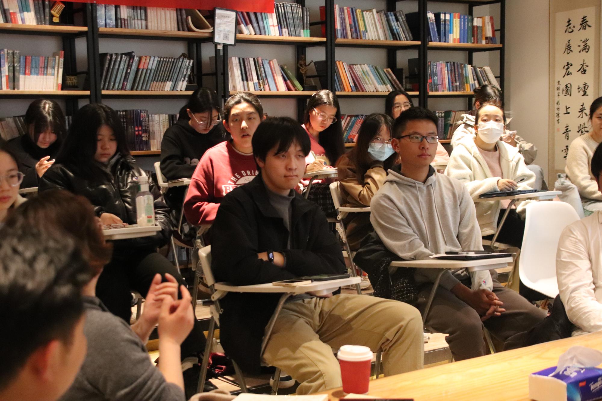 至此,读书会已近尾声。赵老师为我们讲了很多专业性的观点,丰富了同学们的视野。同学们也有些困惑的地方,之后同学和老师之间进行了热烈的交流,无眠书店内一时间洋溢着大家热烈的交谈声。