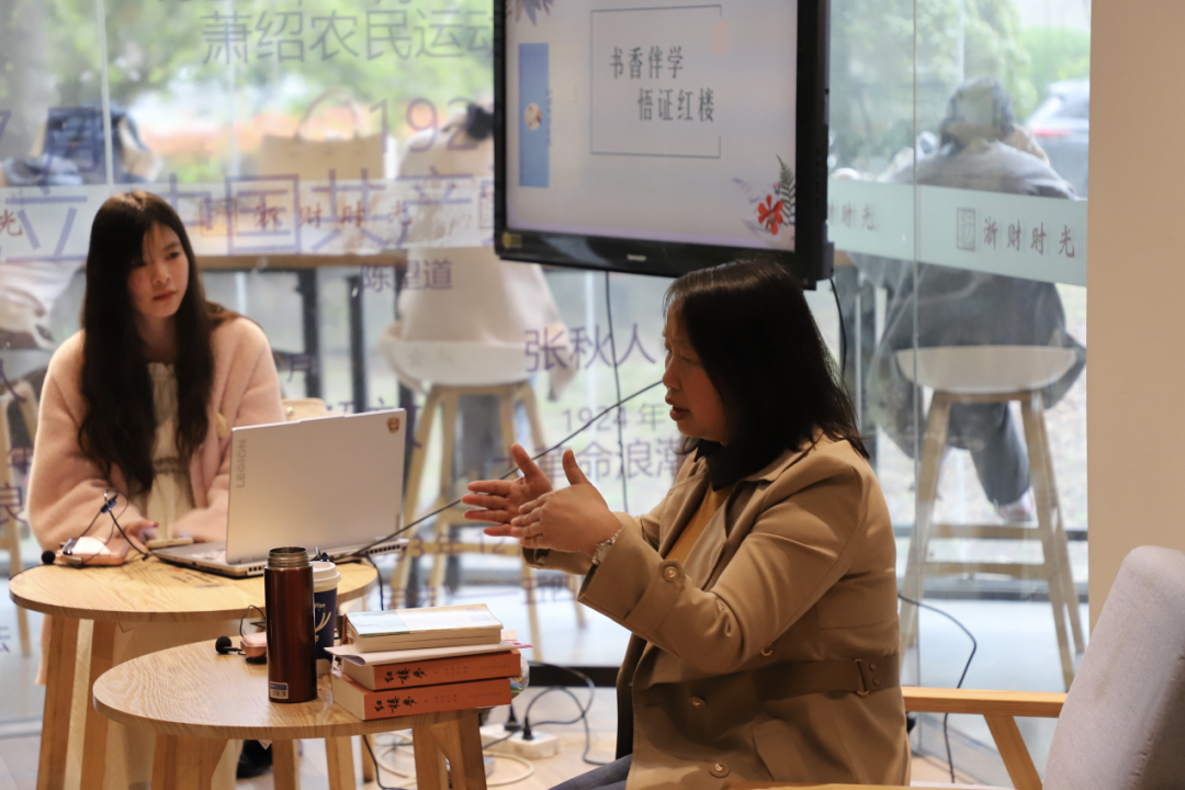 吴智斌老师的带领下三十多位同学共同品读《红楼梦哲学笔记》,从哲学的角度出发把握《红楼梦》。吴老师着眼于《红楼梦》当中的“破”与“立”进行了交流和讲解,指出《红楼梦》的伟大指出就在于它把天、地、人都立起来了,这是其他的中国古典小说所不能做到的。在对《红楼哲学笔记》进行解读时,提出了“慧根”和“善根”的观点,并以这两点去剖析《红楼梦》中的几位人物。吴老师的讲解频频引发在座者的思考——对人性善恶的探讨、对ChatGPT与人类关系的讨论、对人生意义的研究……不少同学充分结合自己的生活经历,说出自己的心声。