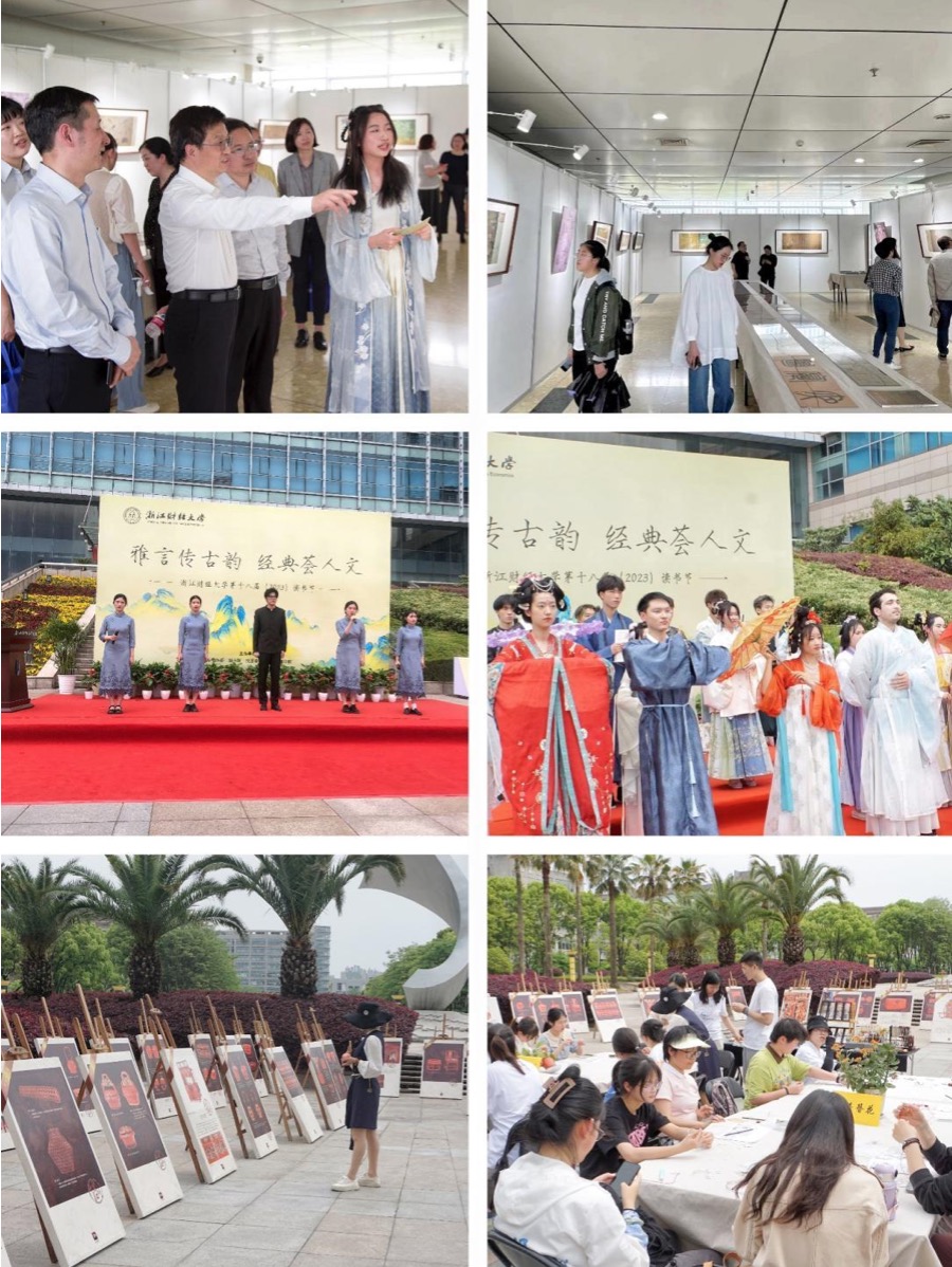 开幕式现场还举办了汉服走秀、诗朗诵、妙手簪花、主题书展、“非遗”图片展、“中国历代绘画大系”等系列活动,吸引了众多师生驻足观看。