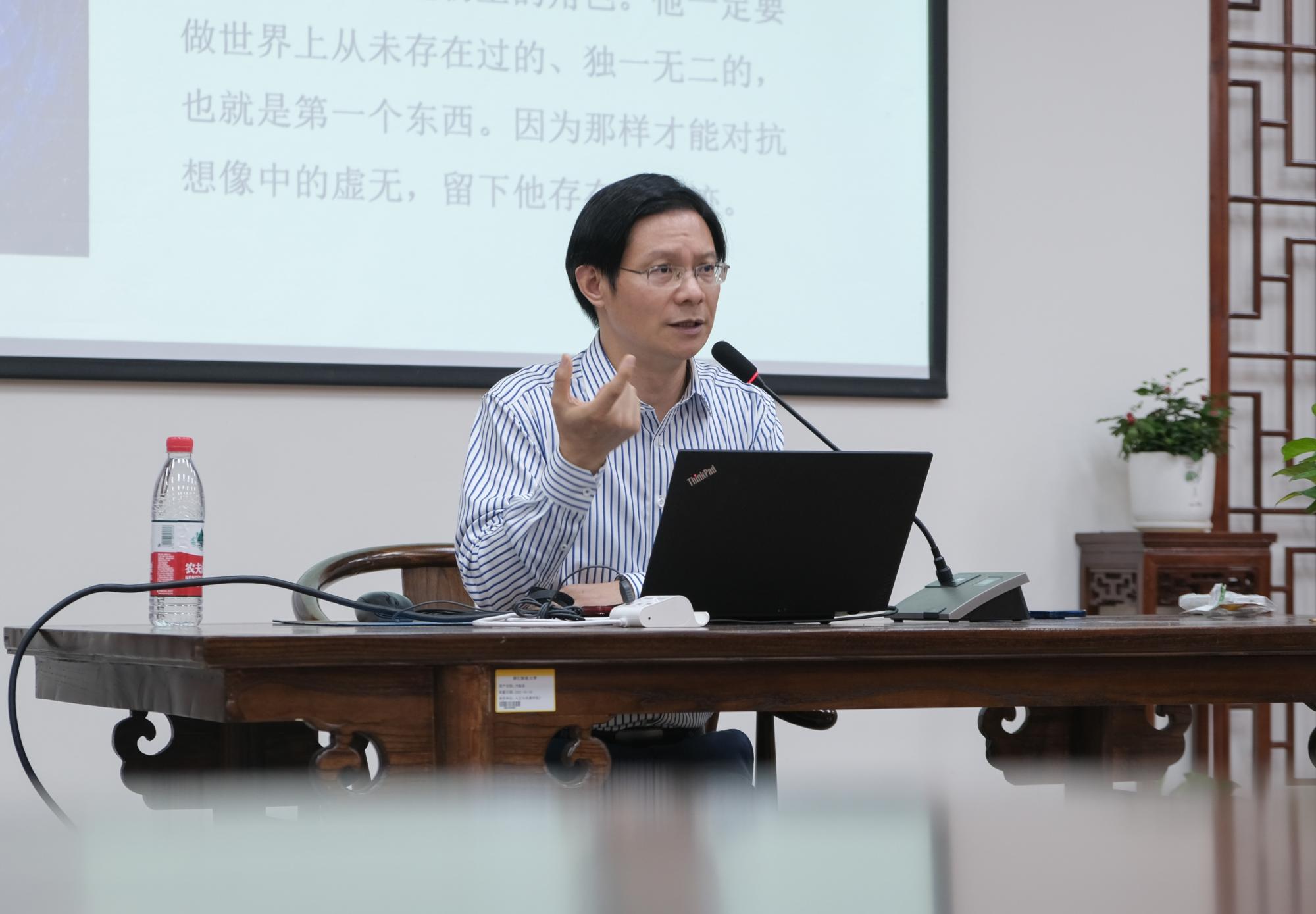 22文学4班的林露莹紧接着问到:“在《痕》中,是否所有人物都是幻想,是他精神世界的总和呢?”