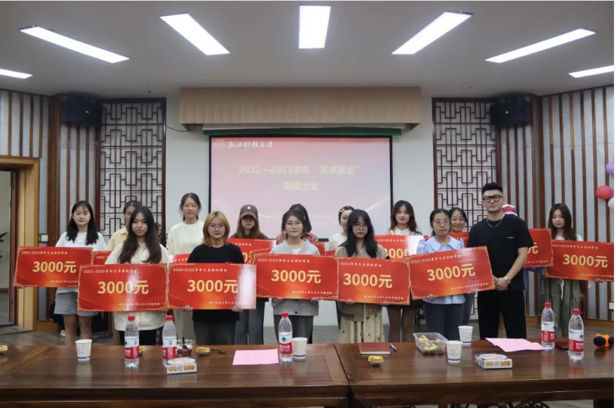 的持续发展服务。随后,高燕书记宣读2022-2023学年天卓奖助学金获评名单,并由詹天卓校友为他们颁奖。
