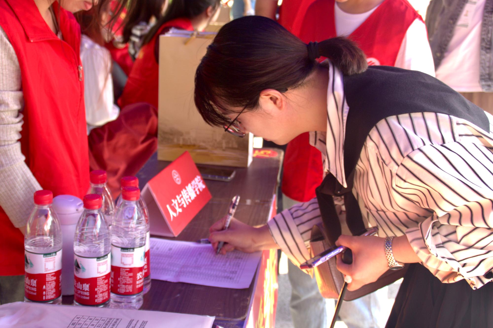 在学涯湖畔搭建了签名墙与“我在人文很想你”朋友圈打卡板供校友们留影打卡。一次次抬手签名,一声声快门响动,让校友们这次珍贵的重逢定格在秋日暖阳中。回忆之中,校友们的笑颜同往昔一样纯真洋溢,十年如流水,我们怀念过去的美好,也共同走向更好地未来。