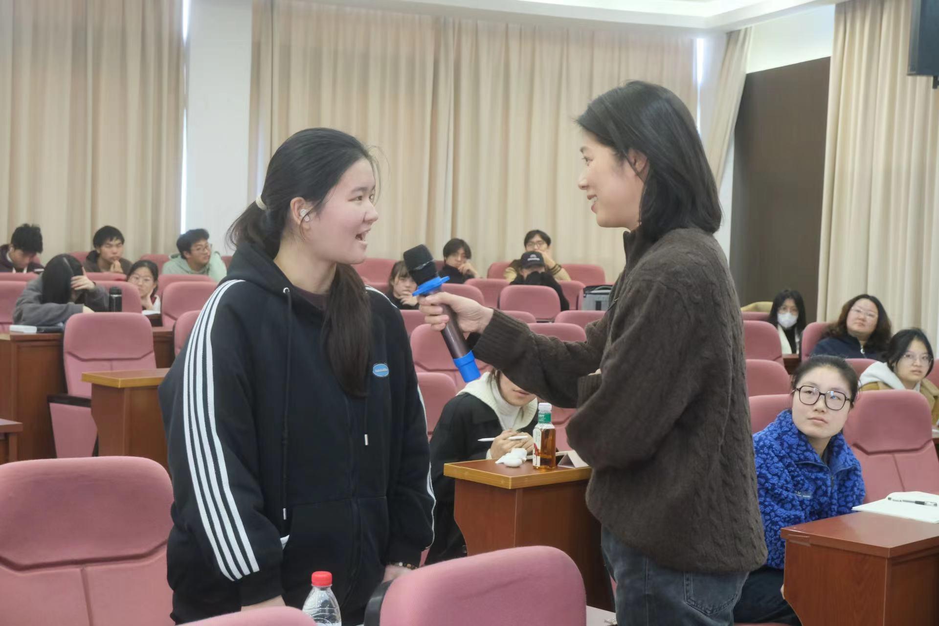 整个讲座过程,蒋盈盈发挥着专业主持人的互动力,充分调动在场学子的参与性。她的讲解深入浅出,运用了大量的新闻实践案例,呈现了新闻行业的前沿信息。近两个小时的讲解和互动让在座者意犹未尽,拓展了同学们对新闻领域的了解和兴趣。