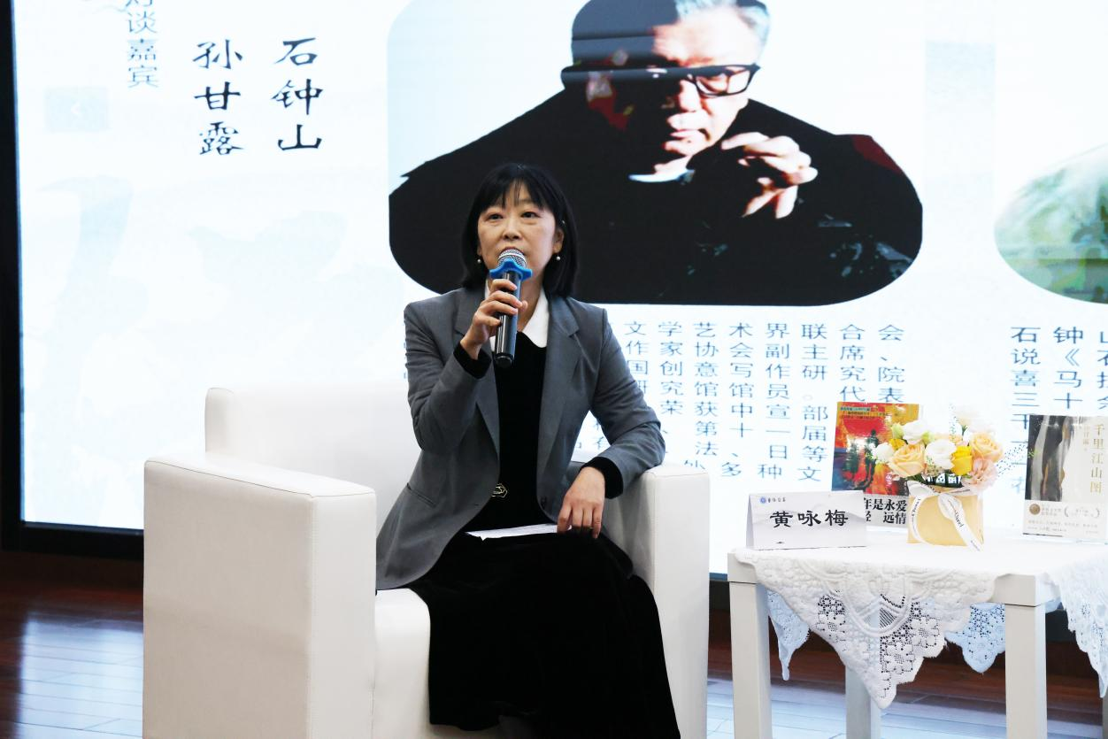 教授黄咏梅主持对谈环节。本次活动由校党委宣传部副部长毛鸽主持。