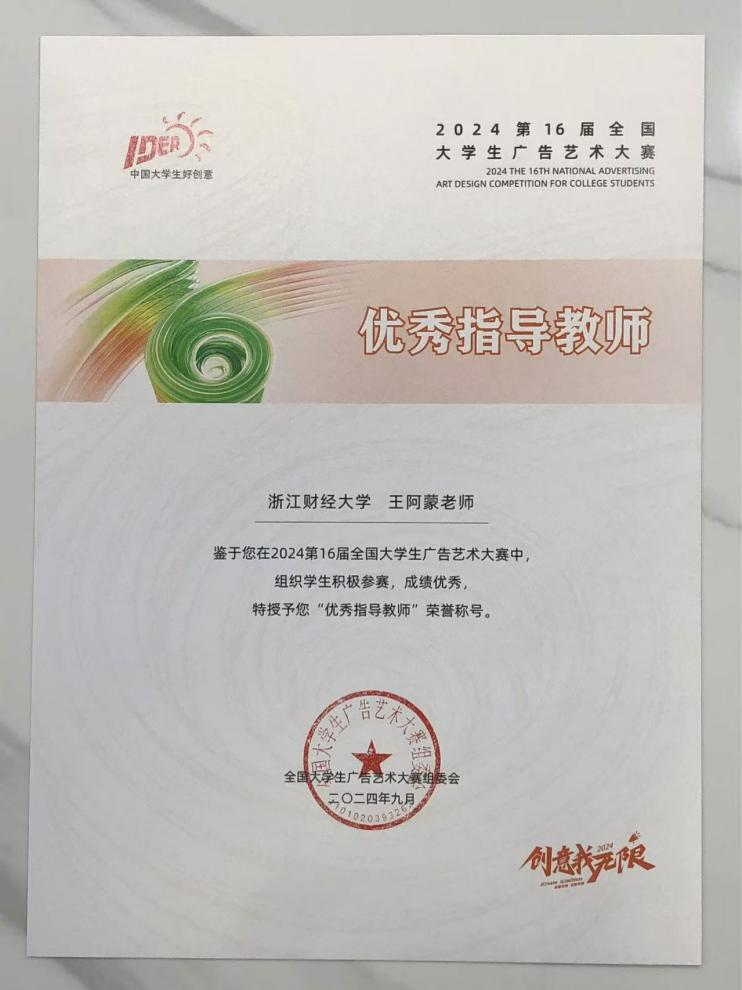 本次大学生广告艺术大赛共设优秀指导教师66名,我王阿蒙老师荣誉入选,为爱游戏