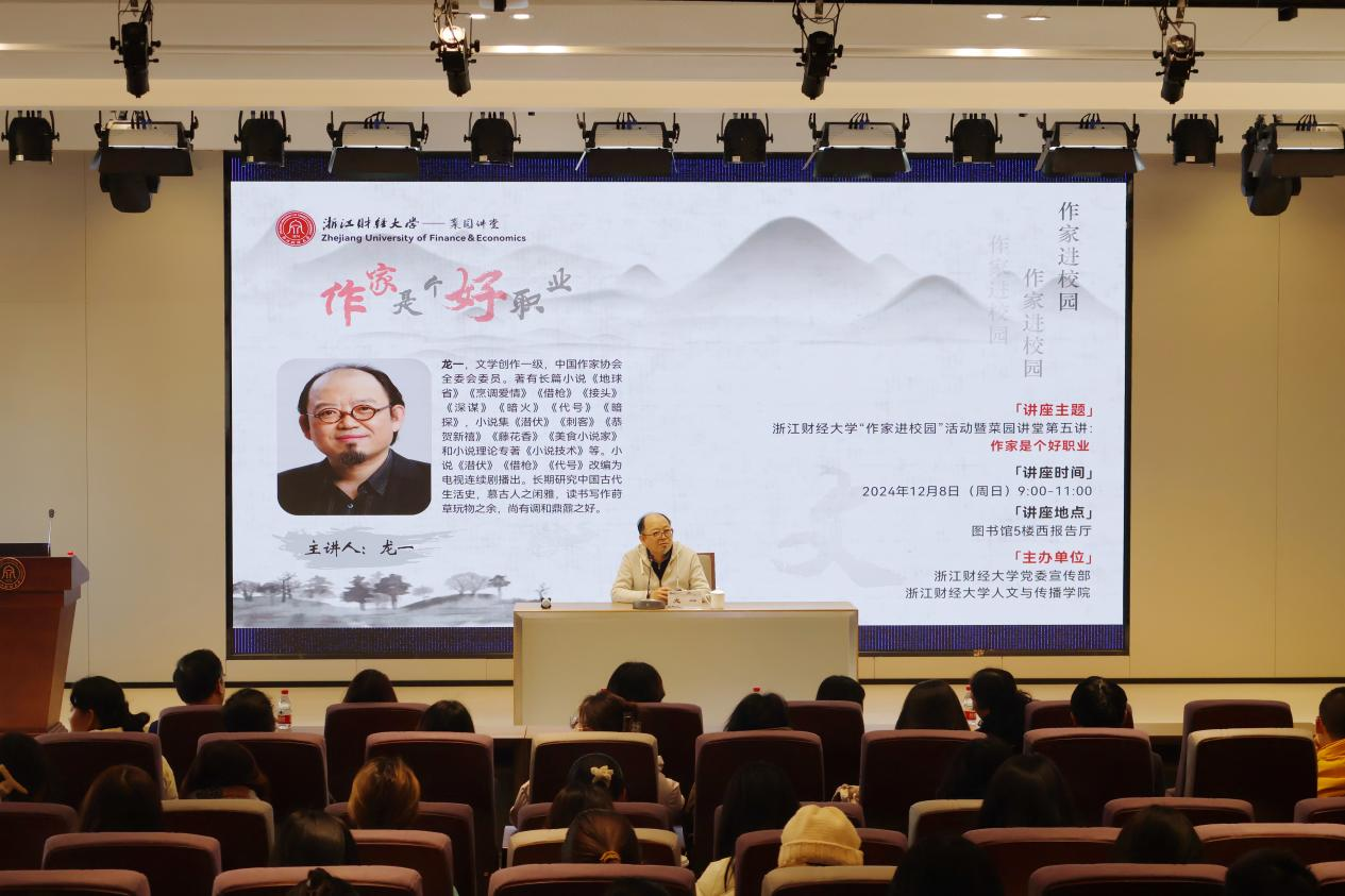 12月8日,“作家进校园”活动暨“菜园讲堂”第五讲在图书馆5楼西报告厅举行。著名作家、中国作家协会全委会委员龙一应邀作“作家是个好职业”专题讲座。党委宣传部、爱游戏