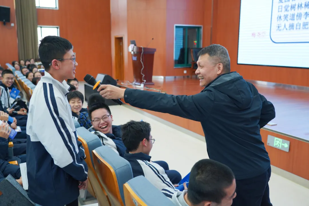 讲座最后张文宇教授鼓励学子们要锤炼强健体魄、坚定理想信念,“激情燃烧的丽中值得,激情燃烧的青春值得”。