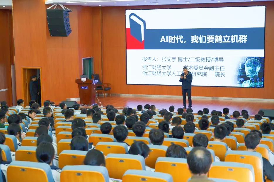 党委副书记徐艳妍、校人工智能研究院院长、二级教授张文宇、辅导员陈琛、徐沛村共同参与,走进丽水中学开展招生宣传活动。活动当天,张文宇教授作《AI时代,我们要鹤立“机”群》主题讲座。