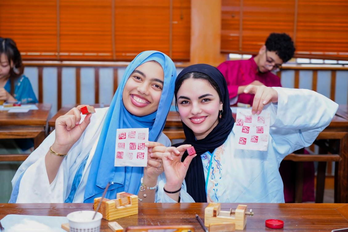 “刚健·文心”传统文化育人工作室举办,以“中文:穿越时空的礼物”为主题,通过篆刻的讲解、展观与实践等多种形式吸引包括摩洛哥、伊朗、哈萨克斯坦、印度尼西亚等多个国家和地区的40余名师生参加活动。
