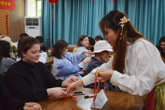 党支部及留学生们一起体验“吃蛋、挂蛋、斗蛋”、“拴疰夏绳”等传统习俗,乐趣无穷。留学生说:“参加这样的活动,我特别开心。我来中国学习2年了,这个活动不仅让我学习到了中国汉字,更重要的是让我了解到了很多的中国文化。”“我今天非常开心。这个活动让我学到了很多节气知识。”